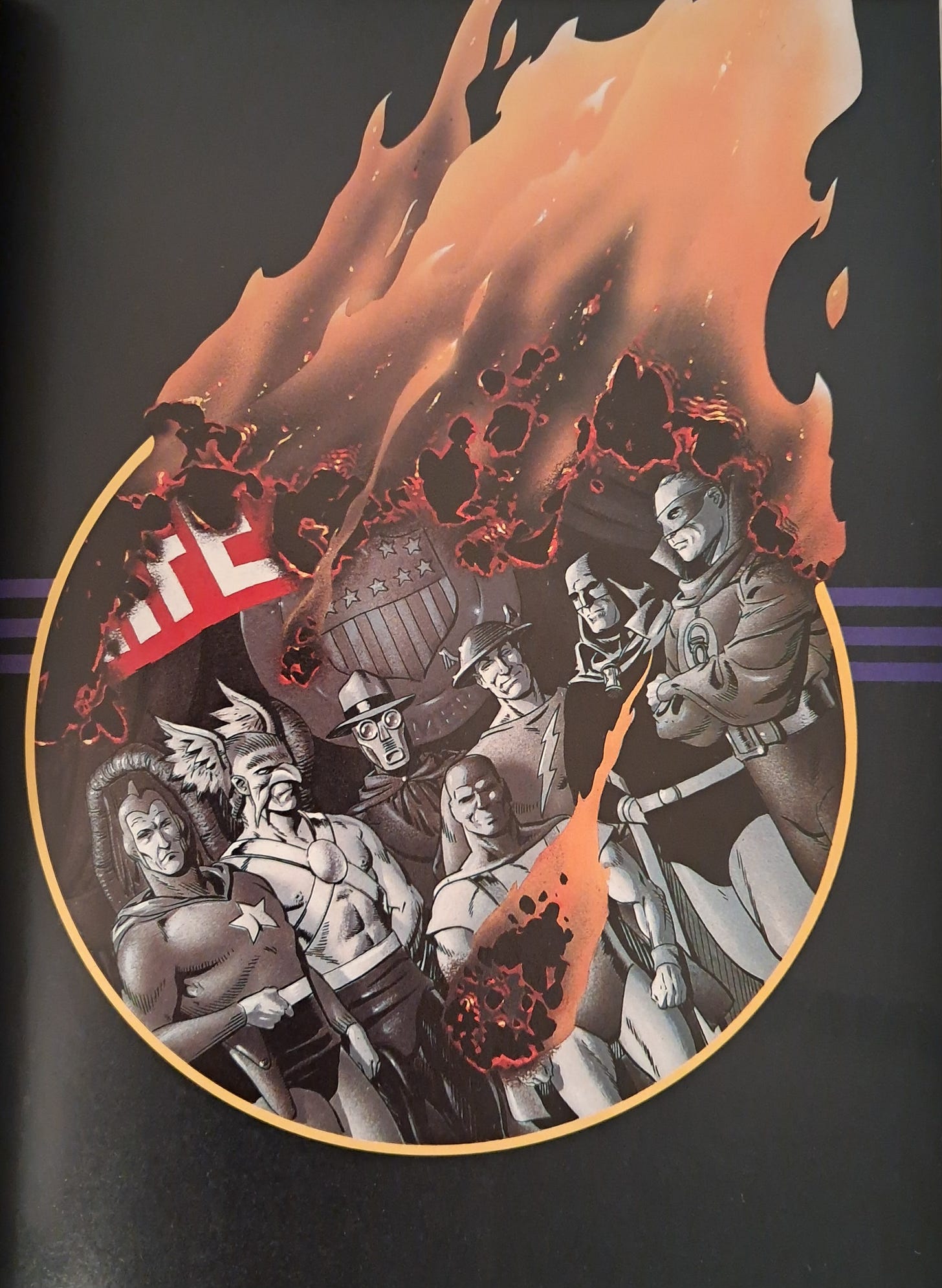 The Golden Age focuses on the end of its titular era, the late 1940s. In the real world, superhero comics entered a period of decline after World War II. Many of those colorful characters faded away as their popularity waned. In this book, the Justice Society and most other masked heroes decide to retire from crimefighting once the war is over. They go their separate ways and try to lead normal lives, with varying degrees of success. All the while, the threat of fascism is rising anew, cloaked in patriotic rhetoric.